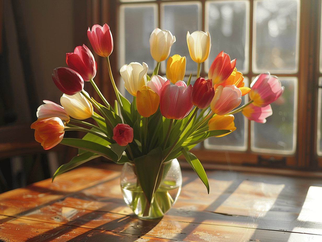 - Anniversaires : Les tulipes roses ou panachées sont parfaites pour célébrer un anniversaire de manière douce et tendre.